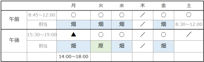 ※手術のため午後の診察開始時間が遅れることもございます。ご了承ください。